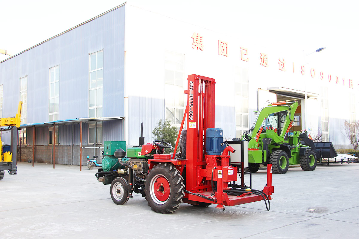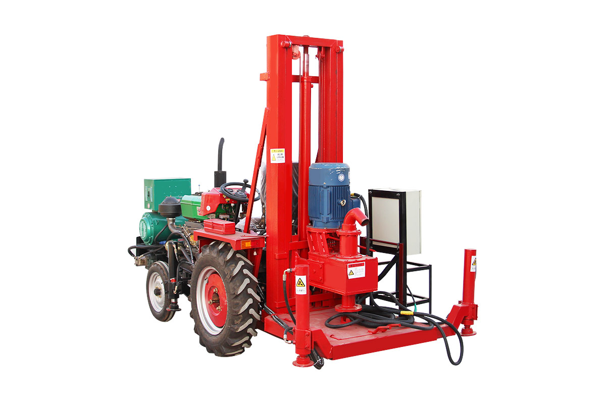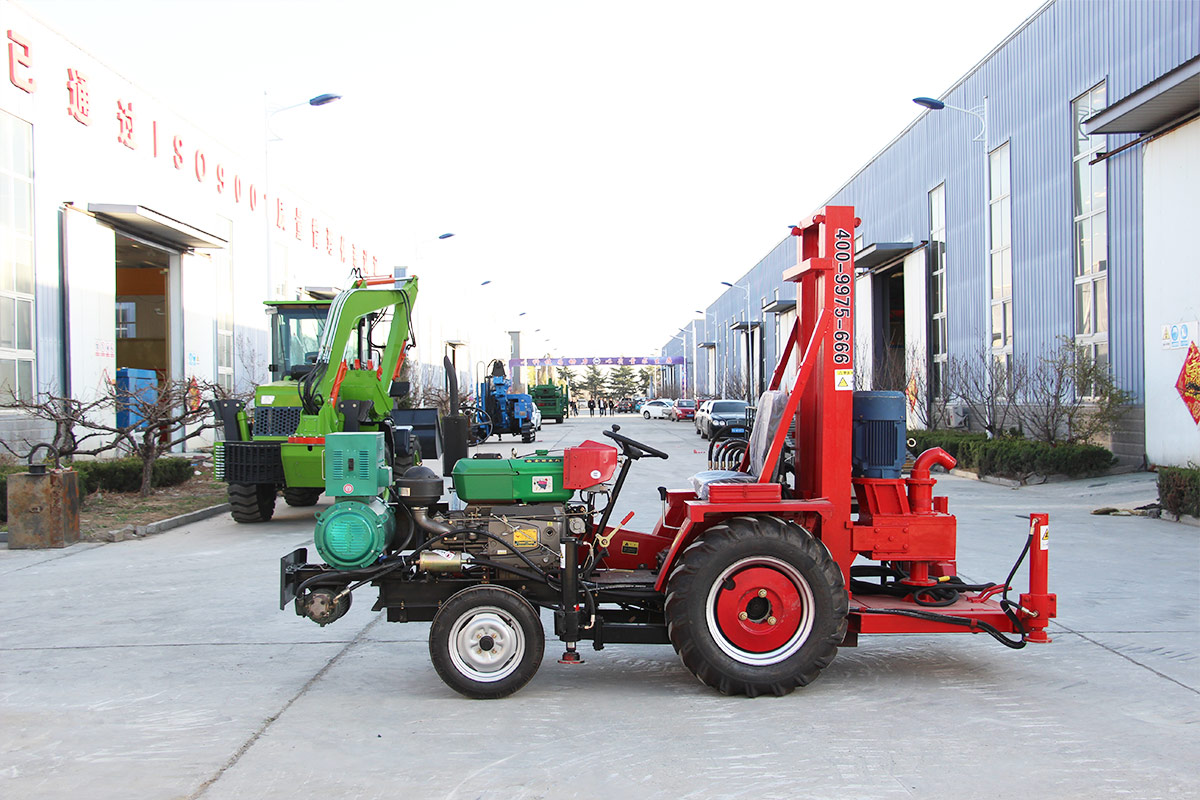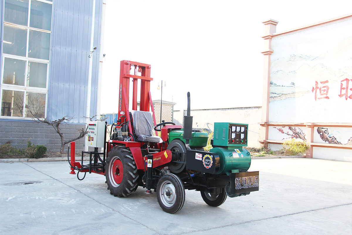 El tractor está equipado con una máquina de perforación de circulación positiva y adopta bastidores telescópicos hidráulicos, lo que reduce eficazmente la altura de marcha, hace que sea más conveniente para moverse, y tiene un gran calibre. Alta eficiencia, adecuada para capas de tierra, arena y guijarros.
